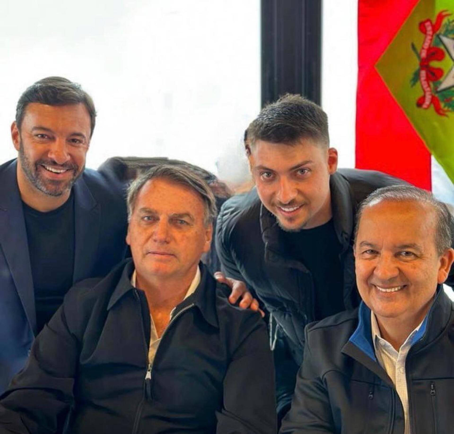 Bolsonaro com o deputado federal Daniel Freitas, o filho Renan e o governador Jorginho Mello (Fotos: FOTO REDE SOCIAL)