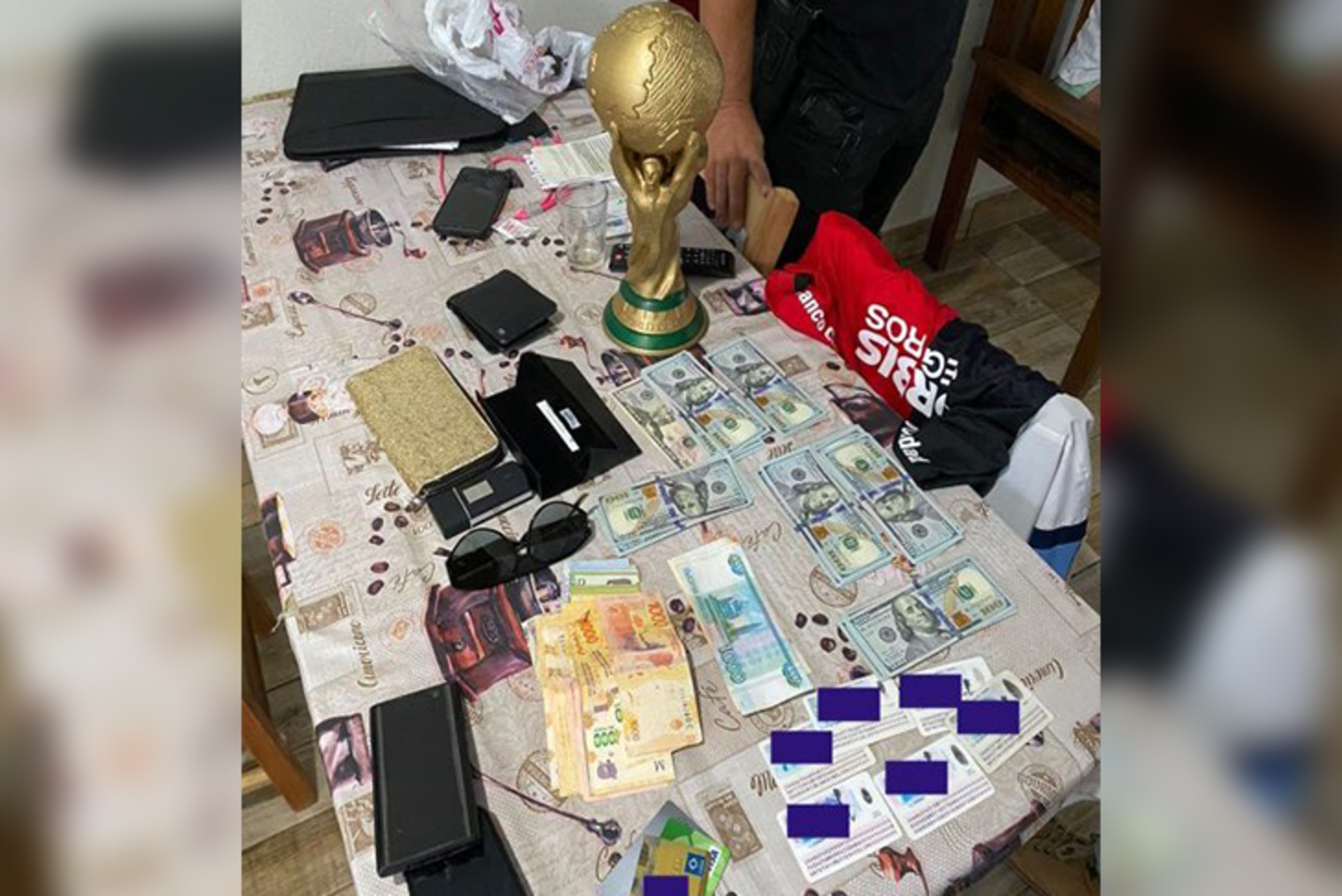 A Polícia Civil de Santa Catarina, através da Delegacia de Proteção ao Turista (DPTUR), realizou uma operação policial neste domingo, dia 19, em que cumpriu mandados de busca e apreensão. Durante a operação foram apreendidos valores em dólares americanos, rublos russos e a réplica de uma taça da Copa do Mundo. Os itens foram haviam sido subtraídos há menos de uma semana e, conforme apurado pela delegacia especializada, as vítimas, que eram turistas russos, perceberam a falta dos pertences pessoais logo após desembarcar de um voo com destino à Florianópolis.