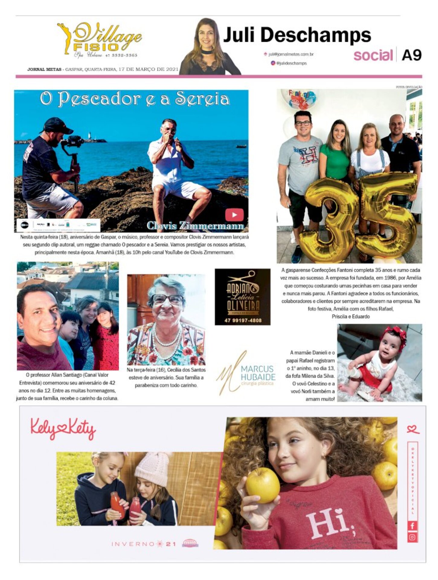 Foto: Divulgação/A gasparense Confecções Fantoni completa 35 anos e rumo cada vez mais ao sucesso. A empresa foi fundada, em 1986, por Amélia que começou costurando umas pecinhas em casa para vender e nunca mais parou. A Fantoni agradece a todos os funcionários, colaboradores e clientes por sempre acreditarem na empresa. Na foto festiva, Amélia com os filhos Rafael, Priscila e Eduardo